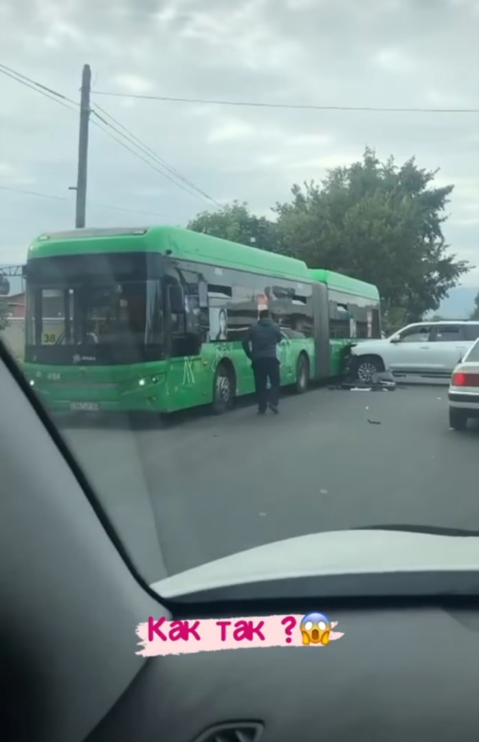 ДТП с автобусом озадачило алматинцев, передает Caravan.kz со ссылкой на городской паблик "Я очевидец Алматы".