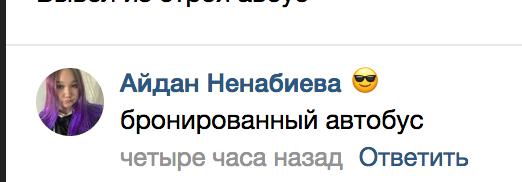 "Бронированный автобус", " Он, наверное, в гармошку метился и промахнулся", — пишут комментаторы под фотографией.