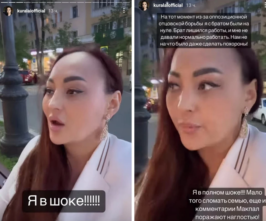 В своих сториз женщина заявила, что они с братом с самого начала не претендовали на наследство отца, но с ними связался представитель пенсионного фонда, который сообщил, что им причитаются накопленные Заманбеком Нуркадиловым 2,5 миллиона тенге. Получить их, по словам сотрудника фонда, мог только Кайрат, старший брат Куралай.