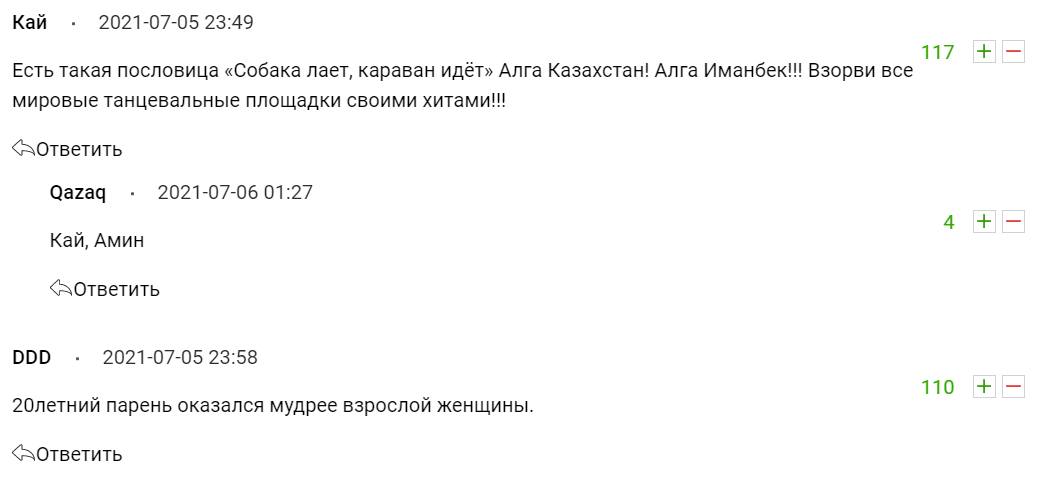 На это мгновенно отреагировала почти полуторамиллионная армия подписчиков Айдара в Instagram. Молодого артиста всячески поддерживали и просили незамедлительно ответить на слова народной артистки, а в адрес Рымбаевой посыпались многочисленные оскорбления.