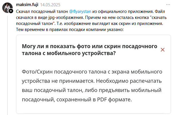 FlyArystan — спонсор данного поста. Бронь №1ZGN0A. Мой рейс должен был вылететь 25 апреля в 8:30, но его перенесли более чем на 18 часов – на 3 часа ночи следующего дня. В результате я не успела на стыковочный рейс, который улетел по расписанию в 12:20. Это был единый билет, оформленный одной бронью, а значит, ответственность за срыв стыковки несёт перевозчик.