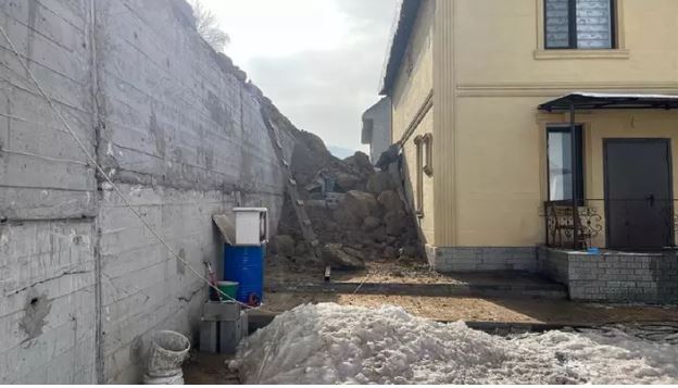— Из-за осадков произошло переувлажнение почвы, в результате чего произошел самопроизвольный сход грунта со склона горы в сторону двух частных жилых домов по улице Баянаул через защитное ограждение — бетонную подпорную стену. Сошедший грунт, повредив оконные проемы одного из домов, зашел во внутренние помещения. В другом доме от удара появились трещины в стенах, — говорится в сообщении ДЧС.