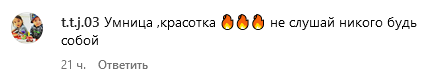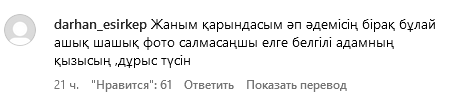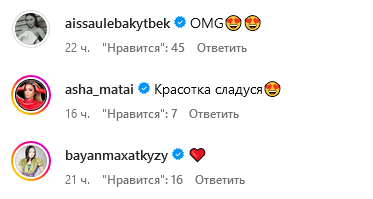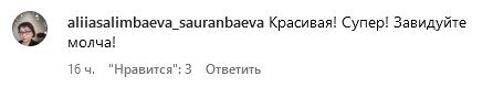Многие комментаторы, в том числе ее мать Баян Алагузова и старшая сестра Айсауле, а также певица Аша Матай, написали в адрес Айару комплименты.