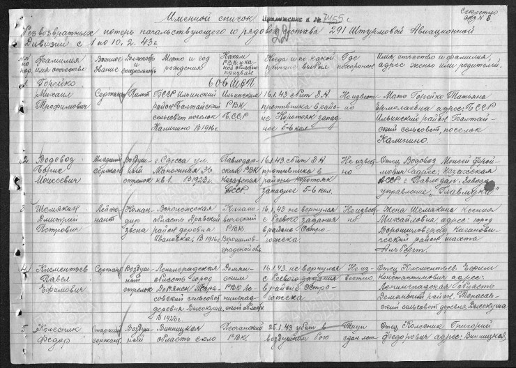 Родственником указан отец бойца Моисей Фроймович Водовоз, проживавший по адресу: КазССР, Павлодар, Заводоуправление "ГлавМука".
