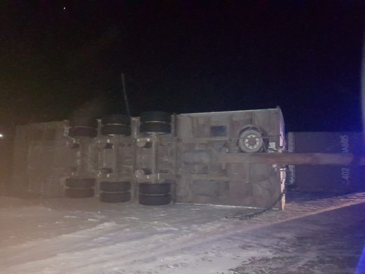 Сегодня глубокой ночью в Уланском районе ВКО грузовой автомобиль «Мерседес» не вписался в поворот и опрокинулся. Водитель сильно пострадал и не смог выбраться из кабины самостоятельно. Вытащить его не удалось и прибывшим на место ДТП полицейским.