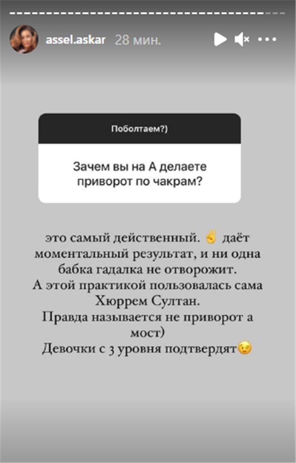Также Асель Аскар рассказала, что занимается приворотами.