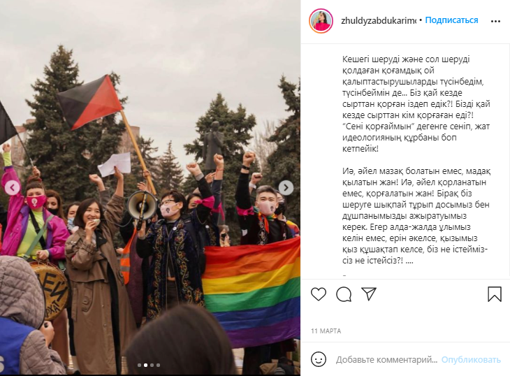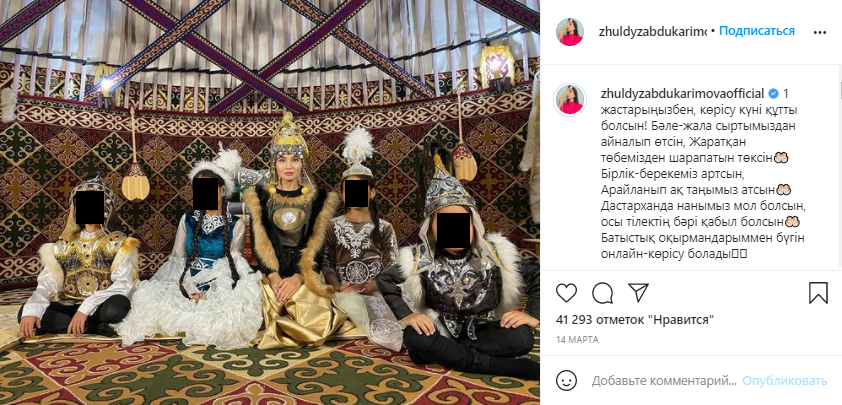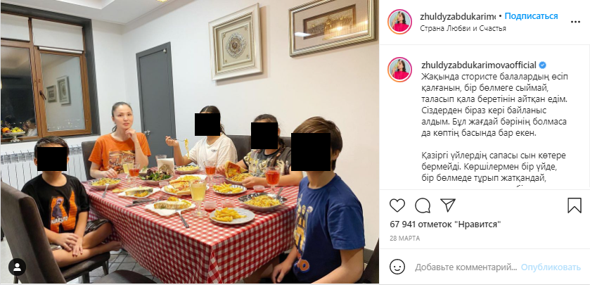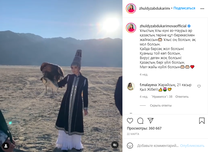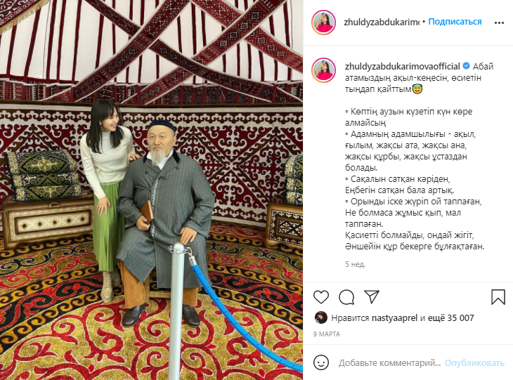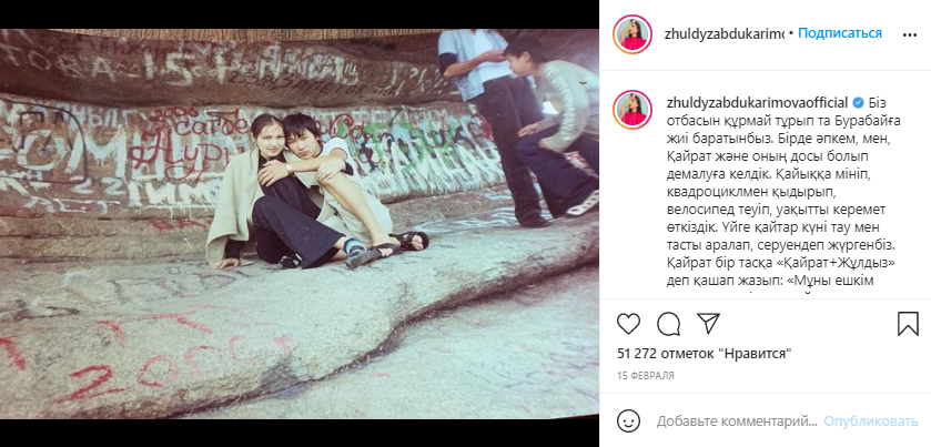 Тем не менее звездная пара все так же активно ведет свои соцсети, как ни в чем не бывало. Например, в свободное время Жулдыз Абдукаримова критикует феминизм, считая, что Казахстану такое течение не нужно.