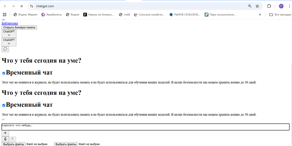 Сервисом от OpenAI не могли воспользоваться и казахстанцы. Сейчас на сайте chatgpt.com висит окошко «Временный чат». И сообщение о том, что «этот чат не отражается в журнале, не будет использовать память и не будет использоваться для обучения наших моделей. В целях безопасности мы можем хранить копию до 30 дней». Кнопка «отправить» не реагирует на нажатия. Кроме того, доступ к предыдущим чатам на сайте также закрыт. При этом у некоторых пользователей всё работает корректно.