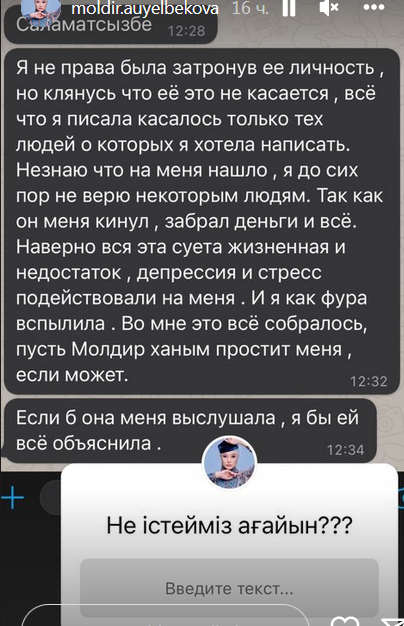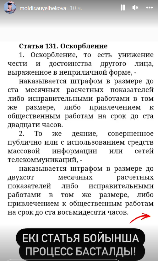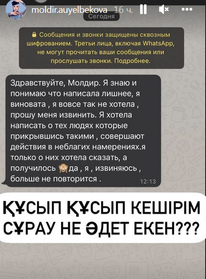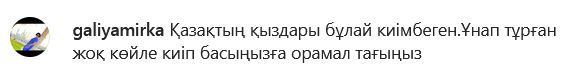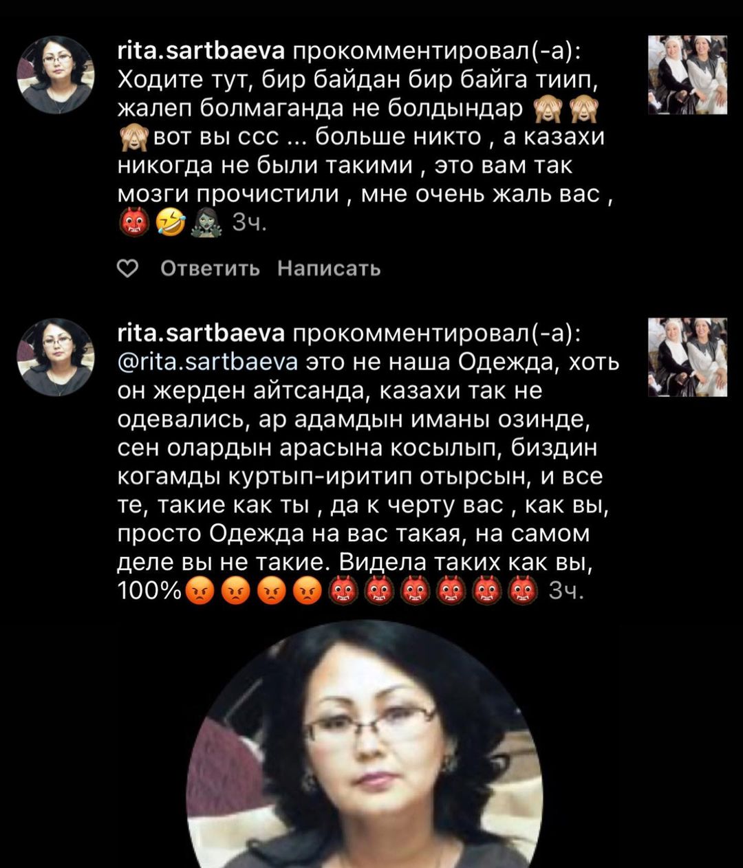 "Уважаемая @rita.sartbaeva, Сообщаю, что официально подала на вас в суд! Вы ответите за каждое свое слово! Удалять свою страницу, менять юзернейм или извиняться передо мной не нужно. В этот раз я дойду до конца. Вы вышли за грань! У моего терпения тоже есть предел!" — написала артистка, опубликовав скриншот с задевшими ее комментариями.