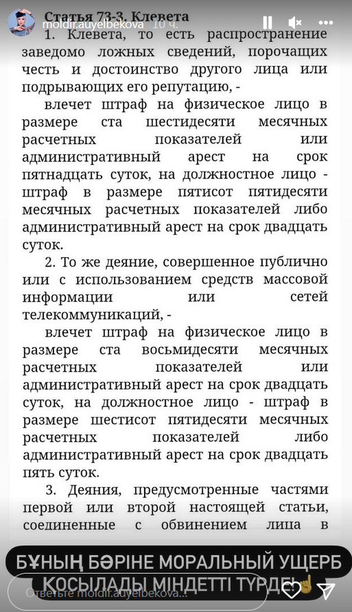 По ее словам, она уже отправила иск в суд, передает медиа-портал Сaravan.kz.
