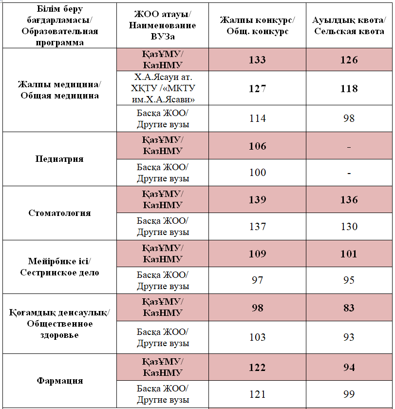 А вот баллы (не все), с которыми прошли в прошлом году на грант в медицинский университет имени Асфендиярова: