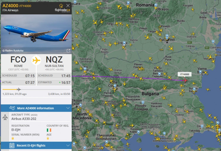 Прибытие в аэропорт столицы Казахстана запланировано на 17:45 (по времени Нур-Султана).