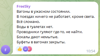 "Основной причиной задержек поездов является состояние магистральных путей, износ которых составляет 57 %. По этой причине для обеспечения безопасности пассажиров вынуждены снижать скорость движения пассажирских поездов.