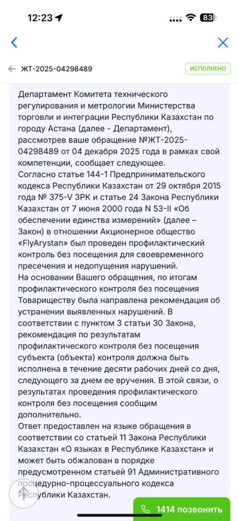 Осенью прокуратура заставила FlyArystan прекратить нарушения и перестать учитывать вес вещей, купленных в магазинах Duty Free, при взвешивании ручной клади пассажиров. Но жалобы продолжаются.