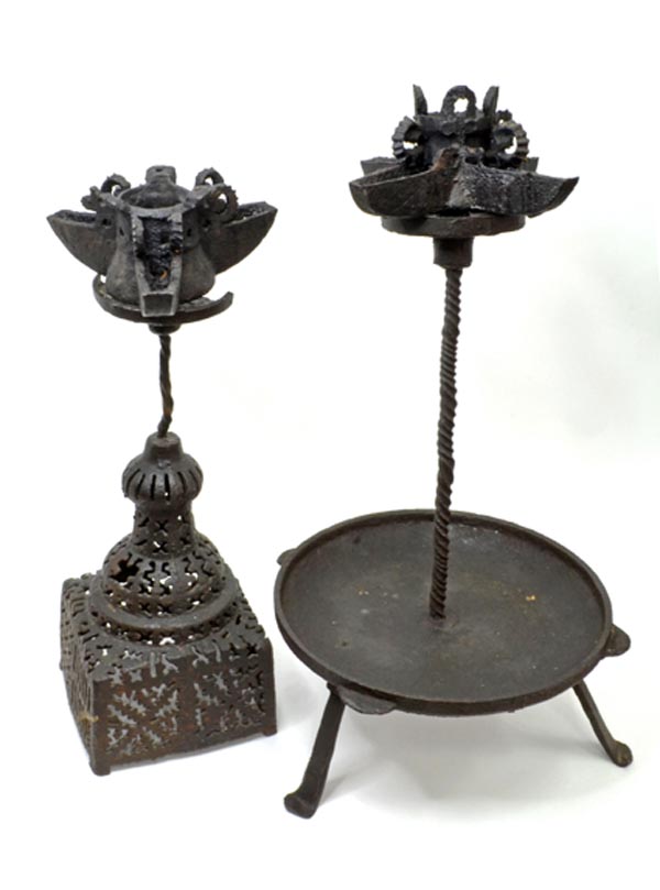 Есть узорные чугунные основания для этих светильников, которые, вероятно, изготавливались в Самарканде. О подобных ажурных основаниях упоминал в своих исследованиях известный историк Абдуллаев. В музее пять таких экземпляров. Получилась интересная экспозиция из несколько подзабытой коллекции.