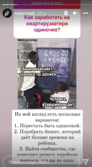Санжара спросили: "Как заработать на квартиру матери-одиночке?"