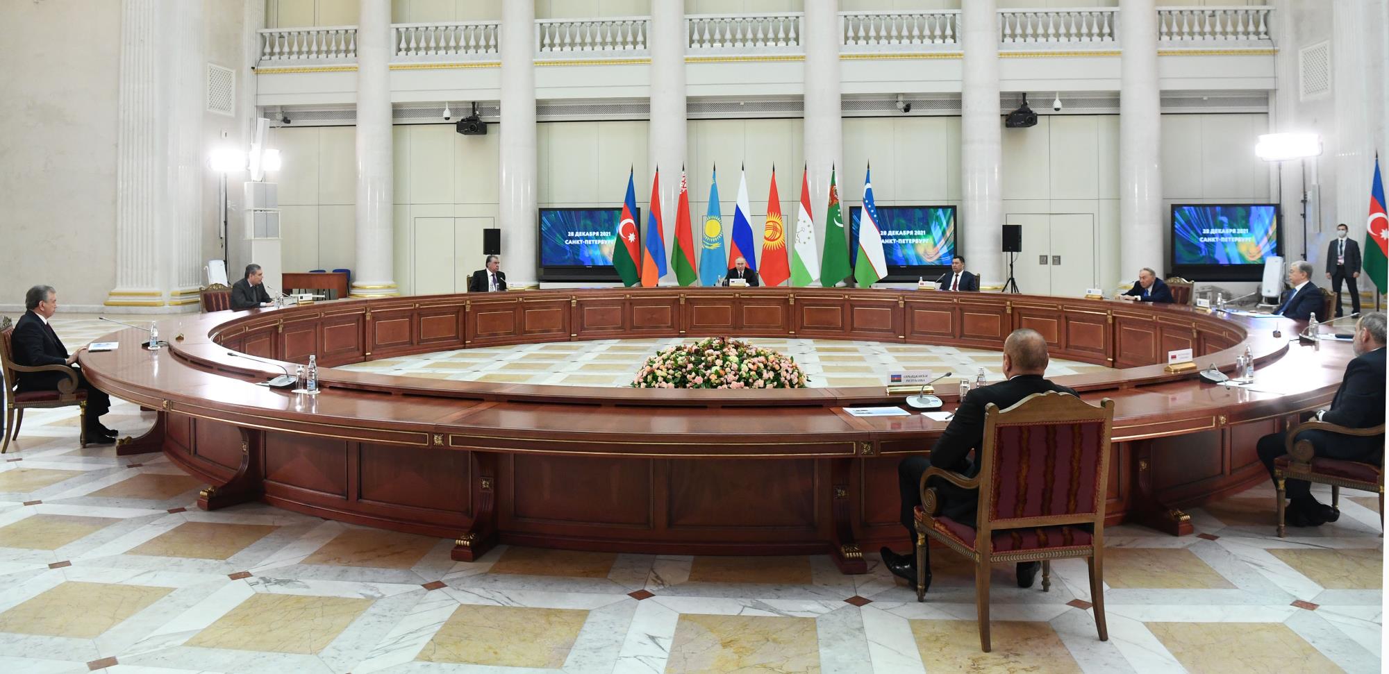 В традиционной неформальной встрече лидеров стран-участников Содружества независимых государств наряду с Первым Президентом – Елбасы Нурсултаном Назарбаевым также приняли участие Президентом Казахстана Касым-Жомарт Токаев, Президент Азербайджана Ильхам Алиев, Премьер-министр Армении Никол Пашинян, Президент Беларуси Александр Лукашенко, Президент Кыргызстана Садыр Жапаров, Президент России Владимир Путин, Президент Таджикистана Эмомали Рахмон, Президент Туркменистана Гурбангулы Бердымухамедов, Президент Узбекистана Шавкат Мирзиёев.