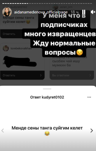 Меденова сама попросила задавать ей вопросы, однако то, что спрашивали некоторые, певице не понравилось. Сперва она сообщила, что у неё в подписчиках много извращенцев: