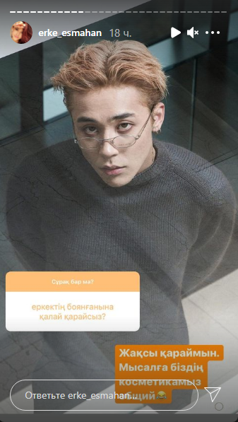 Ерке Есмахан рассказала в сториз в Instagram о своём парне и о косметике, передаёт медиа-портал Сaravan.kz.