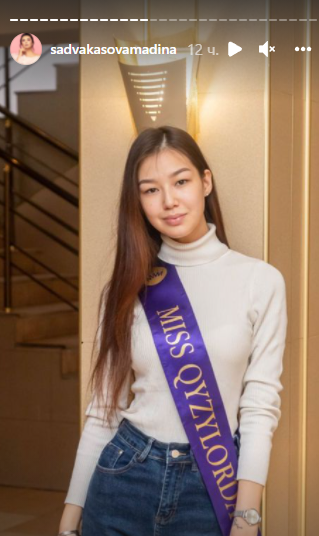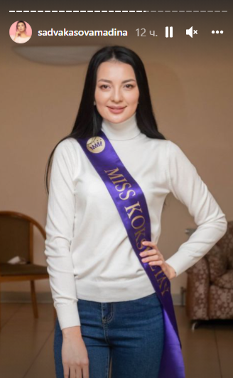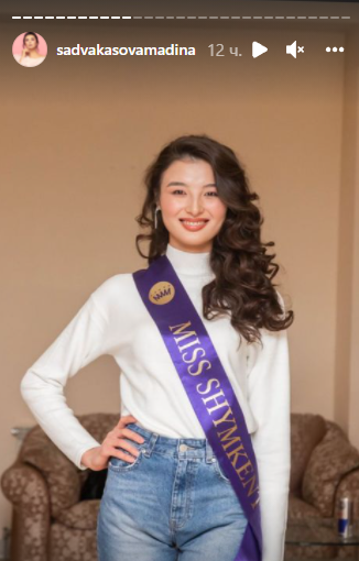 "Мисс Шымкент" — семнадцатилетняя Шугыла Жаксыбекова. Она студентка медицинского колледжа, работает моделью и в салоне красоты в своем городе.
