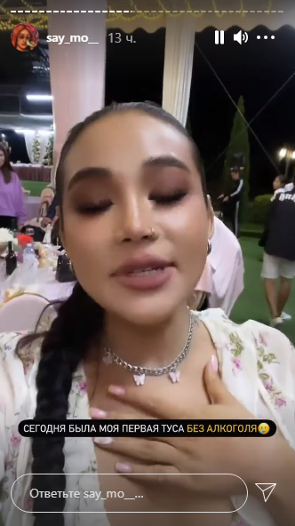 SayMo показала в сториз в Instagram, как развлекалась на недавней вечеринке, не выпивая при этом, передаёт медиа-портал Сaravan.kz.