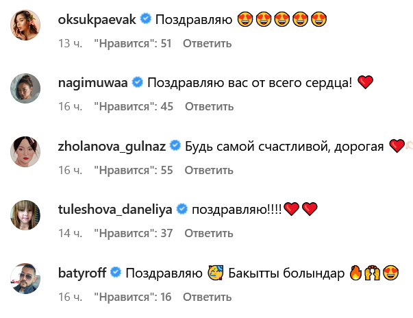 Напомним, ранее Камшат Жолдыбаева подтвердила, что уже вышла замуж.