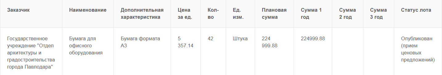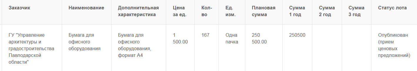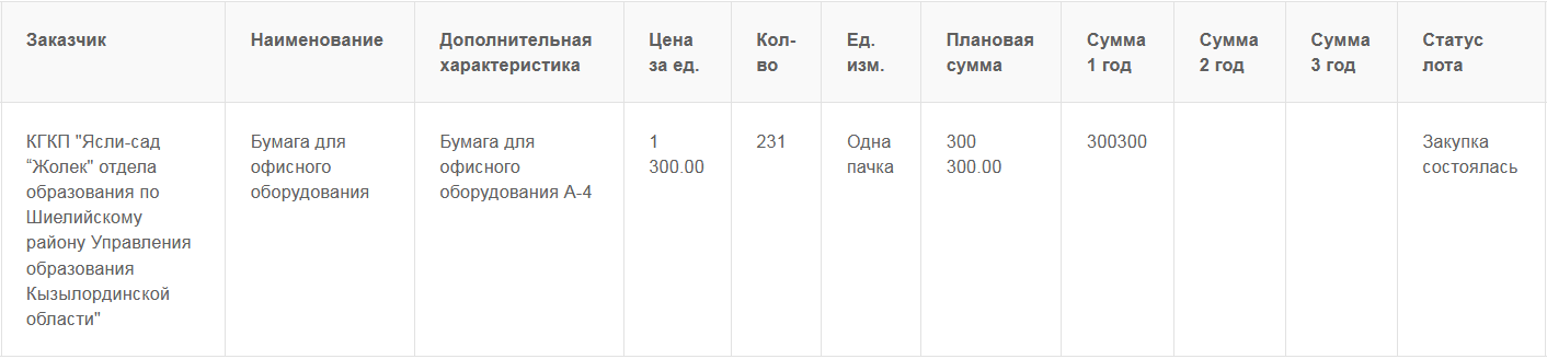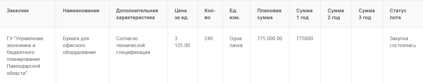 Например, детский сад в Кызылординской области 18 апреля закупил бумагу по 1300 тенге за пачку, а управление в Павлодарской области — по 3125 тенге за пачку 15 апреля. Разница больше чем в 2 раза.
