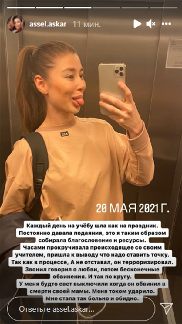 Однако такие истории регулярно появляются на страницах известных личностей в Instagram. Например, Асель Аскар, которая на оразу обязательно раздает мясо специально зарезанного барана, получила тысячи новых подписчиков в Instagrаm, когда начала рассказывать подробности о расставании с мужем, брак с которым заключила в мечети. Например, Асель рассказала, что он обвинил ее в смерти своей матери. Были и другие рассказы, которые Айбек вряд ли хотел видеть выставленными на всеобщее обсуждение.