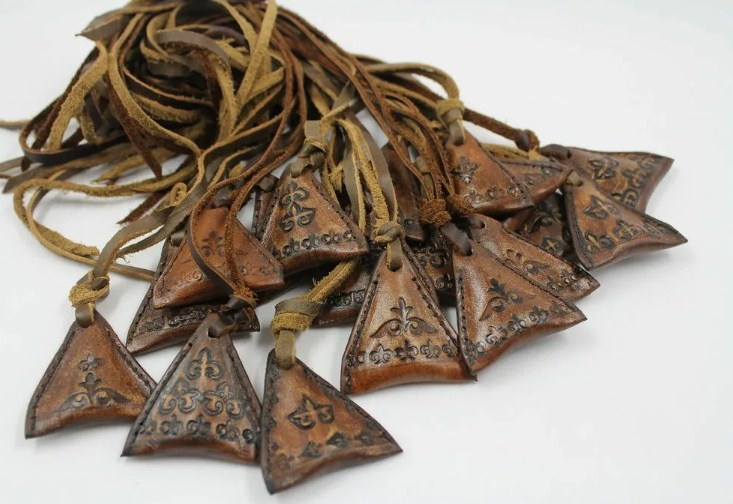 Носить тумары на шее стали относительно недавно, примерно лет 200 назад. Тогда вошло в моду украшать кожаные треугольники тиснением, бусинами, монетками, и глупо бы было прятать такую красоту.