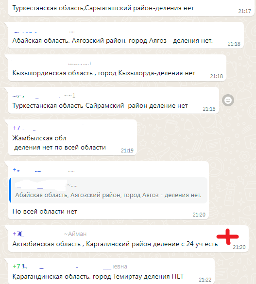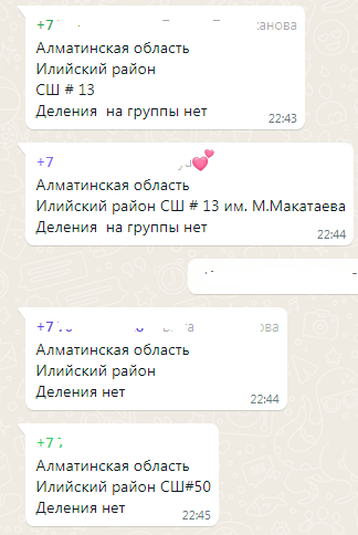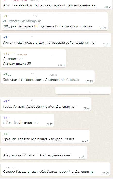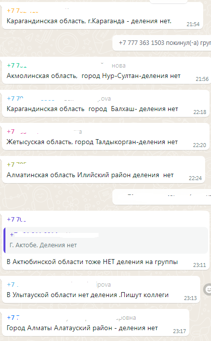 Сегодня (24 августа 2022 года) к нам в издательство пришла группа учителей Алматинской области, Илийский район. Они озвучили эту проблему: НЕТ деления на группы. В школе 10 учителей русского языка, уже увольняют двух учителей (пока пенсионеров), общая нагрузка сокращается ровно на 50%, настроение у всех нулевое. Как преподавать по сути иностранный язык в классе с наполняемостью 25-45 учеников не представляют… Мы провели опрос в наших предметных группах, попросили указать область и район и сообщить, есть ли деление на группы. И вот какой результат имеем на сегодняшний день. Для удобства поместила все ответы в таблицу.