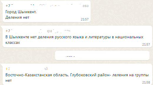 Справедливости ради, надо озвучить и негативную тенденцию этого учебного года. Именно с этого учебного года практически во всех регионах Казахстана нет деления на группы на уроках русского языка в классах с нерусским языком обучения. Для этого в нормативные документы ввели очень «хитрую» формулировку: «Деление класса на две группы допустимо по решению местных исполнительных органов в организациях образования при наполнении класса в 24 и более обучающихся по предмету «Русский язык и литература» во всех классах с нерусским языком обучения».