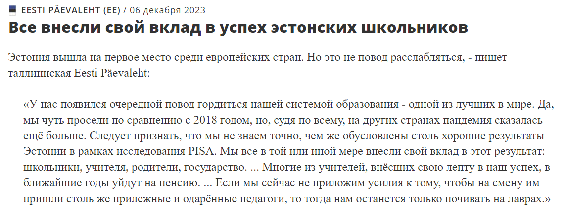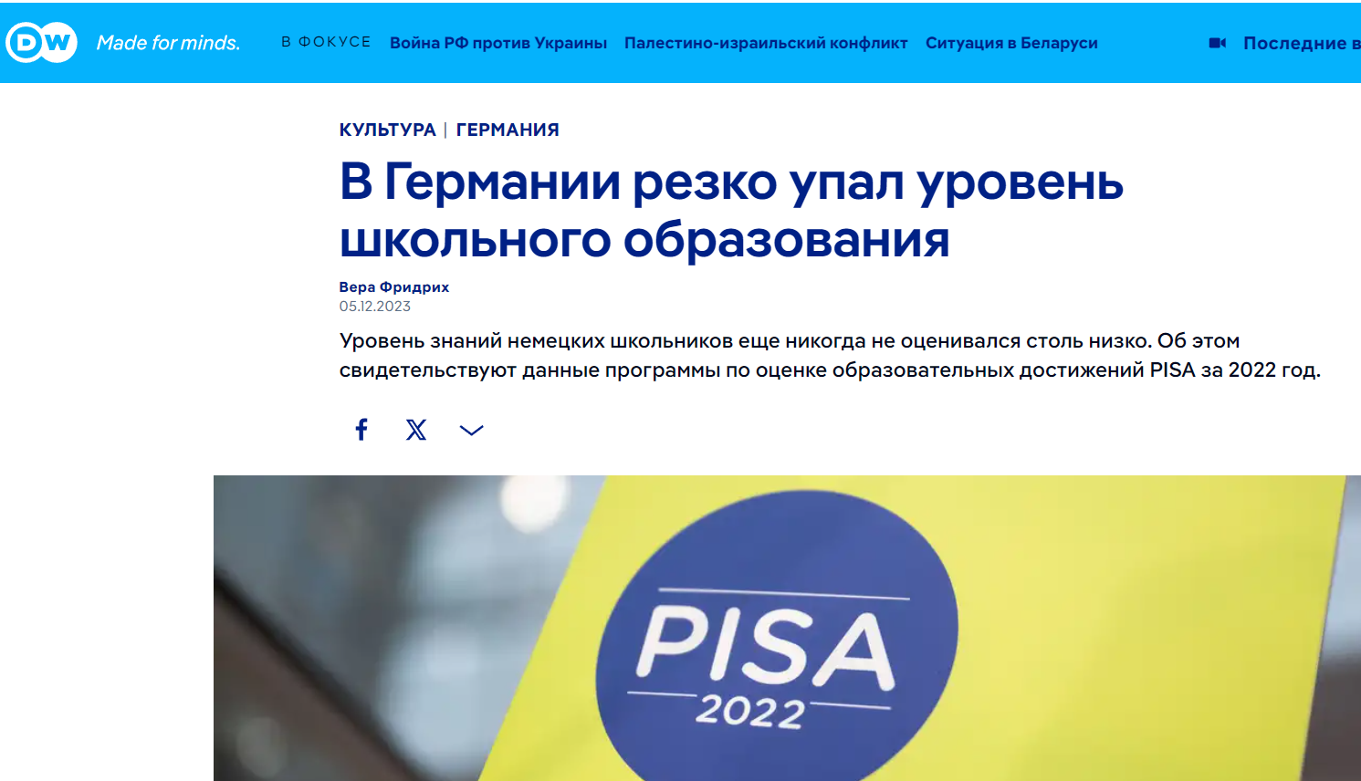«Пятого декабря 2023 года ОЭСР были опубликованы результаты PISA 2022. Все страны отреагировали на результаты практически в тот же день в СМИ и в аналитике.