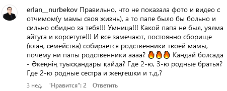 Таких комментариев были сотни. Некоторые люди пытались оправдать Турсенгали, поясняя, что у него нет плохих мыслей, и он всего лишь хорошо общается с дочерью жены, но защитники оказались в явном меньшинстве.