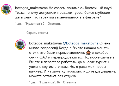 Но в целом нельзя сказать, что Tez.kz явно выделялся среди других казахстанских туроператоров, многие агенты работали с компанией годами без каких-либо проблем и прекратили сотрудничество только после инцидентов, описанных выше.