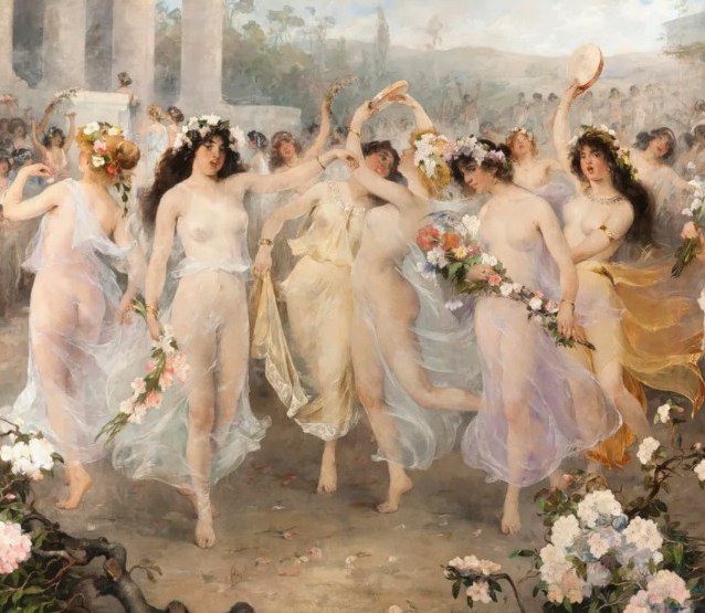 Там они, подражая жрицам, доводили себя до безумия плясками, выпитым вином и дымом листьев священного лавра, а потом рвали на себе одежду и голосили песни в честь Бахуса и его матери. То есть атмосфера там была почти как на нынешнем корпоративе в женском коллективе.