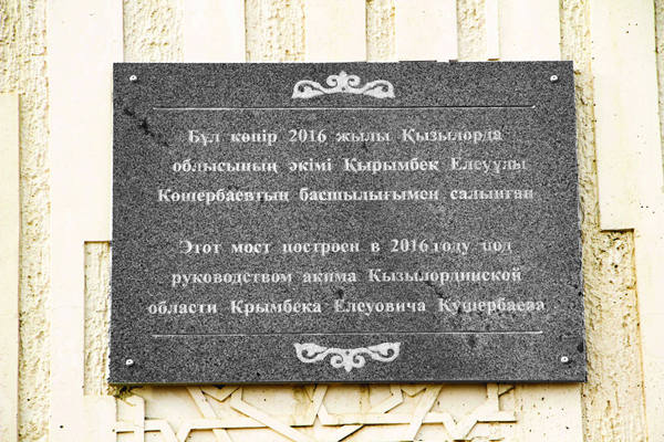 “Состоялась торжественная церемония открытия моста – первого из трех автомостов, которые строятся в рамках программы освоения левобережной части города Кызылорды, – писала в тот день местная пресса. – Аким Кызылординской области Крымбек Кушербаев поздравил горожан с началом практической реализации масштабного проекта по строительству нового города на левом берегу Сырдарьи”.