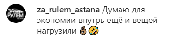 "Покатай меня, большая черепаха", "Казахская матрешка", "Угнала у всех на виду…", "Забрал жену с работы", "Думаю, для экономии внутрь еще и вещей нагрузили", — пишут комментаторы под фотографией.