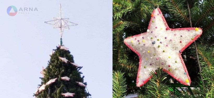 "Эти елки состоят из следующих частей: корона "Звезда" на центральной площади длиной 200 сантиметров; 200 штук светодиодных гирлянд по 10 метров; игрушка "Звезда" − 47 сантиметров, 25 штук; игрушка "Звезда" − 36 сантиметров, 220 штук; 245 звездообразных адаптеров питания.