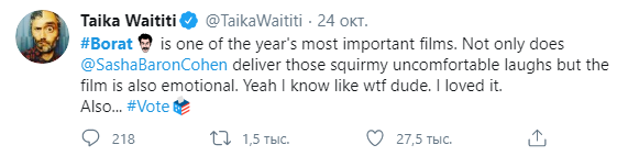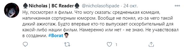 Выход второй части фильма сопровождался большой шумихой в соцсетях. Многие наши соотечественники активно выступали против релиза этого фильма и даже пытались его запретить. Не так давно казахстанцы запустили хэштег #cancelborat и даже выходили на акции протеста против творчества Саши Барона Коэна. А криминальный авторитет из Казахстана даже пообещал найти американского актера и "преподать ему урок" за оскорбление своей родины.