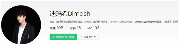 Кроме того, на первом сервисе у Димаша опубликовано 108 авторских синглов, 16 альбомов и 103 музыкальных видеоклипа, как официальных, так и с живыми выступлениями. Общее число подписчиков его аккаунта составляет более 564 тысяч пользователей.