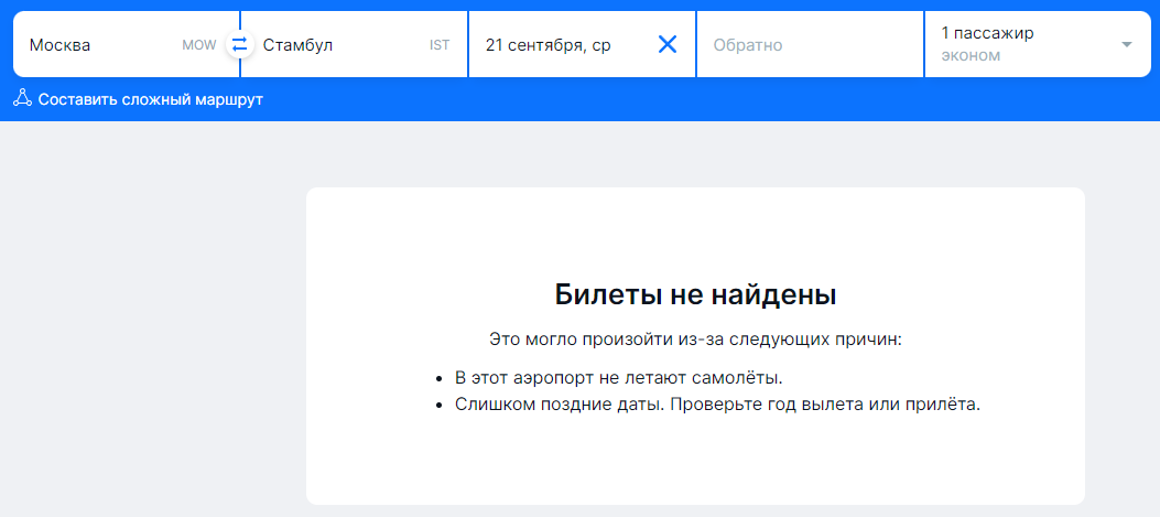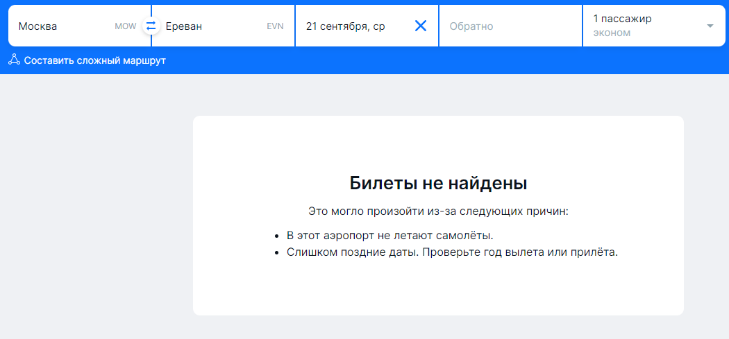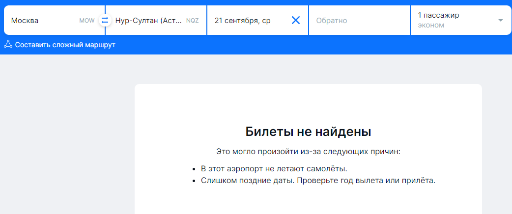 На сегодня уже не осталось билетов из Москвы в Астану: