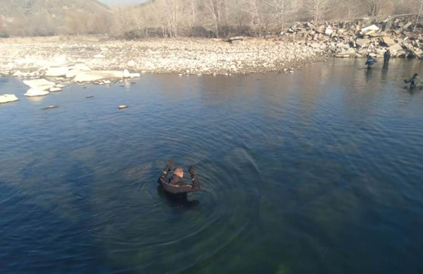 – Перед нами поставили задачу прочесать дно рек в районе мостов, так как была велика вероятность, что убегающие преступники могли сбросить оружие в реку именно с моста. В минувшем году тоже по просьбе полицейских мы под мостом через Каратал искали и нашли ружье, из которого подчиненный военнослужащий застрелил своего начальника, – рассказал заместитель руководителя оперативно-спасательного отряда (ОСО) ДЧС Алматинской области Берик НАЙЗАБЕКОВ. – Начали с Талдыкоргана, где расположены 2 моста – по улице Жансугурова и проспекту Назарбаева. Передвижение спасателей было затруднено тем, что всё русло реки каменистое, хотя средняя глубина была по колено, местами – по пояс. Дно состояло из маленьких, больших и очень больших валунов. А между мостами (для снижения напора воды) построены каскады в виде ступенек. Часть из них была покрыта льдом, часть – илом. Под ними много промоин. Если попасть в такую, можно получить серьезную травму. Плюс – сильное течение и температура воды около 2 градусов. А ребята были одеты в гидрокостюмы на резиновой основе. В них жутко скользко. Не знаю, кто больше волновался – те, кто был в воде, или те, кто страховал их на берегу. К счастью, на улице была плюсовая температура. Но даже в этом случае мы построили работу таким образом, что через полчаса пребывания в реке спасатели выбирались на берег, грелись в сопровождавшей их машине, пили горячий чай и снова шли в ледяную воду. И так продолжалось весь световой день.