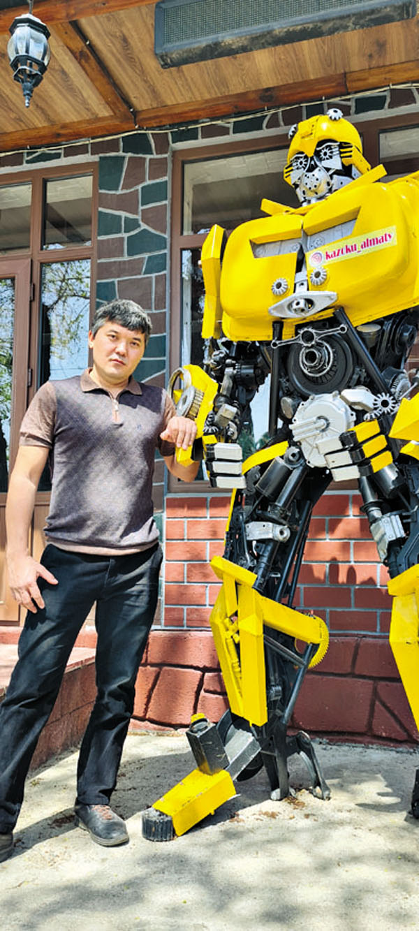Когда я был в музее Рипли, за границей, видел там трансформеров, мотоциклы, персонажей из металлолома. Подобные скульптуры часто выставляются в торговых центрах, перед кафе. Несколько лет назад ходил по нашим ТРЦ, бизнесменам, предлагал им сотрудничество, можно было бы в кинотеатре поставить фигуру, тогда в прокате шел фильм “Бамблби” (2018), но никто меня не поддержал. Гуманоид стальной – приглашает на той: для чего казахстанцы опустошили склады робототехники