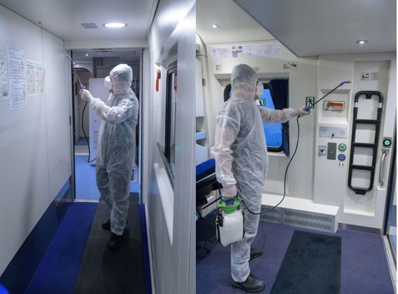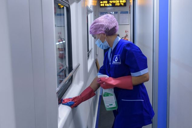 Немаловажный факт, что в период пандемии уделяется особое внимание дезобработке вагонов. Перед отправлением в рейс каждый вагон проходит обработку против бактерий и вирусов сертифицированными препаратами.