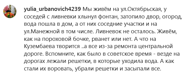 "От подписчика: "Здравствуйте, улица Манежная, д 61, Майкудук, район Умая. Нас сегодня затопило талыми водами! Приезжали МЧС, сказали, что в том году, когда делали центральную дорогу по Карла Маркса, засыпали все ливневки. Кто будет за это отвечать??! Хотелось бы получить ответ от представителей акимата — как принимают такую работу? И ещё очень волнует вопрос: это каждый год теперь так будет?" — говорится в подписи к снимкам, на которых видно залитое водой жилое помещение.