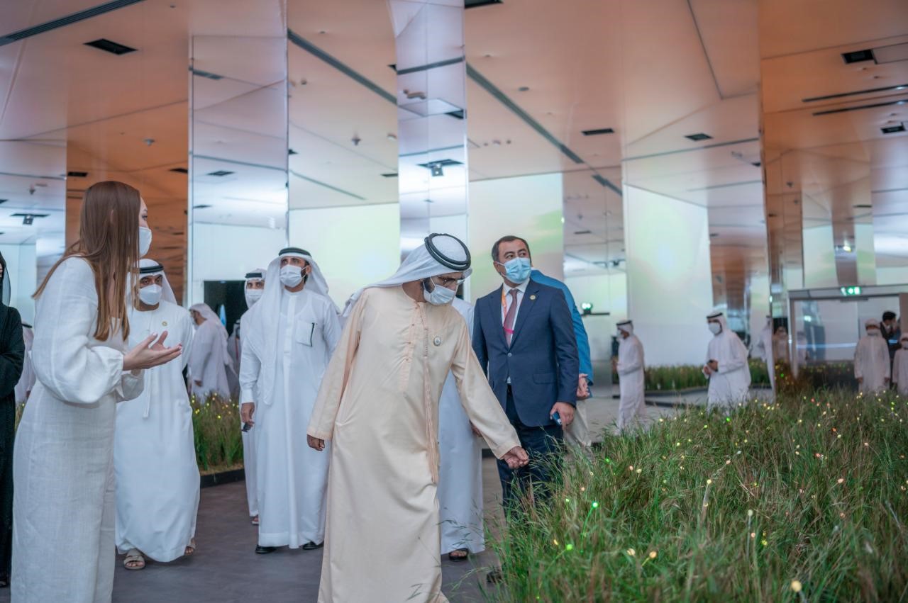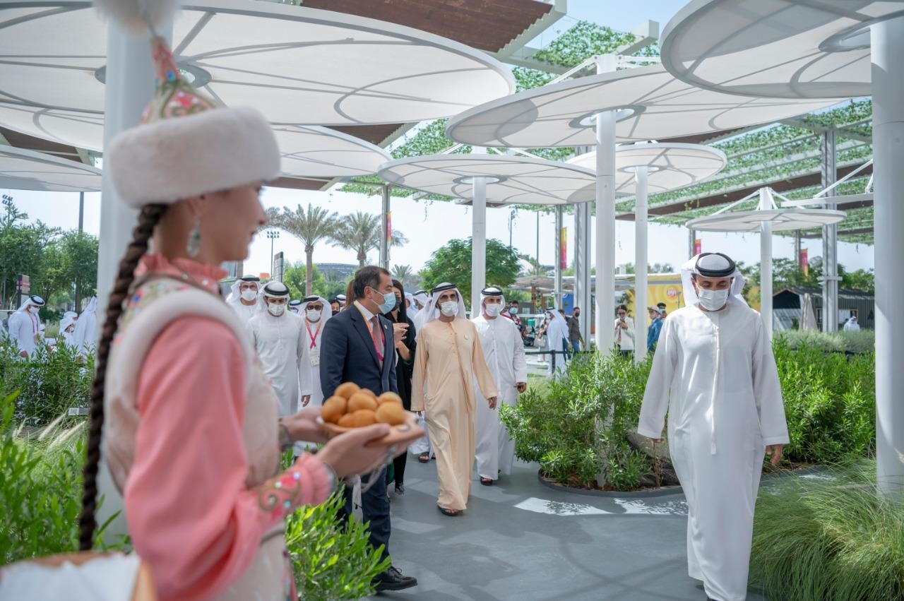Правитель Дубая, Премьер-министр, Вице-президент Объединенных Арабских Эмиратов Его Высочество Мохаммед ибн Рашид аль-Мактум и Наследный принц Дубая Хамдан ибн Мохаммед Аль Мактум в сопровождении Генерального директора ЭКСПО-2020 Ее Превосходительства Рим аль-Хашими посетили Павильон Казахстана в числе первых на ЭКСПО-2020. Высокая делегация всего посетила 4 павильона, в том числе, Национальный павильон ОАЭ, а также США и КНР.