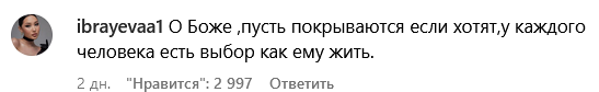 Многие комментаторы написали Динаре слова поддержки, однако было немало и тех, кто отметил, что надеть платок может любая женщина, независимо от ее прошлого, поэтому покрывшихся жещин надо поддерживать, а не критиковать.