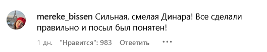 Публикация вызвала неоднозначную реакцию, многие согласились с Динарой, но немало было и тех, кто возразил ей. В числе высказавшихся оказались Баян Алагузова и Адиль Лиян.