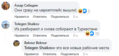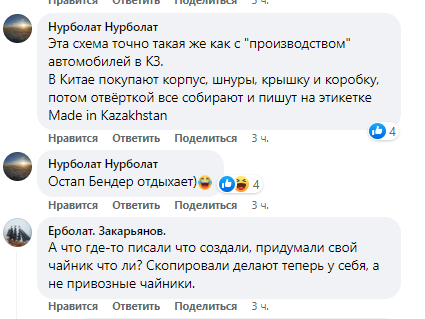 Вчера пресс-служба акимата Туркестанской области выложила запись на странице Facebook о том, что в Сарыагашском районе действует цех по производству электрических чайников. Сообщается, что за сутки там производят по 600-700 чайников. Аким района Мухит Отаршиев положительно оценил продукцию и пообещал, что предприниматель, начавший свое дело, получит господдержку.