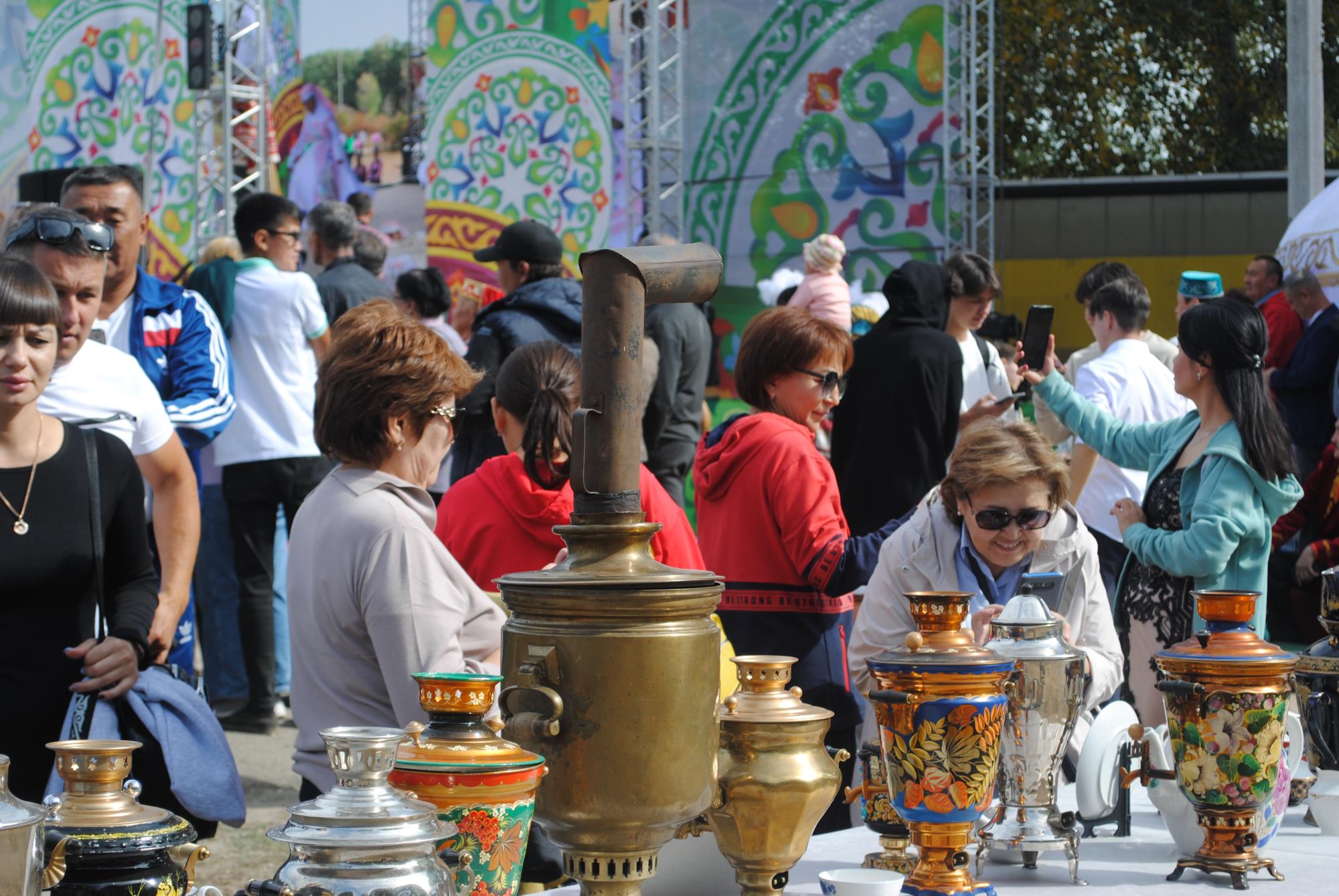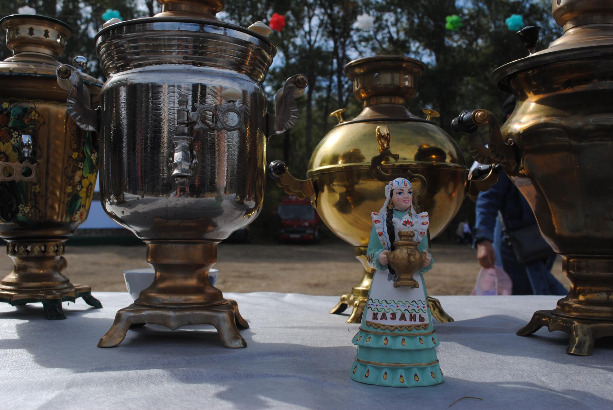 Тут же развернулась выставка самоваров, организованная семейским литературно-мемориальным музеем Ф. Достоевского. Пузатые и вытянутые, электрические и те, которые нужно растапливать сосновыми шишками, латунные и покрытые ручной росписью, ведерные и миниатюрные, современные и двухсотлетние самовары привлекали сотни зрителей. Ведь чай – любимый напиток двух наших стран. И если у нас шутят, что казахи на 70 процентов состоят из чая, то в Татарстане уверяют, что без чак-чака и чая – ты не татарин.